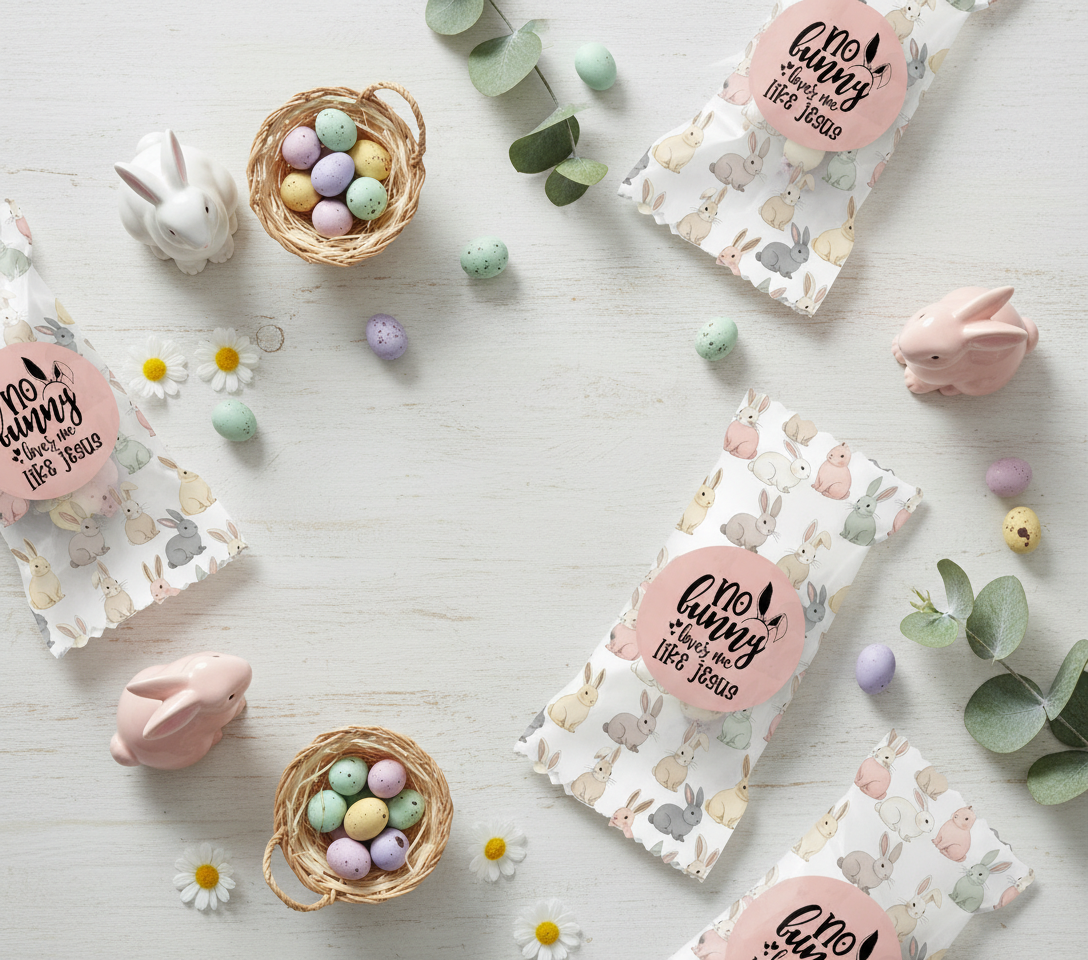 Soft, fluffy marshmallow eggs are nestled inside a charming bunny-themed shell and completed with your custom message. These sweet Easter treats turn ordinary moments into magical ones — whether tucked into baskets, placed at the Easter table, or handed out as thoughtful favours.
